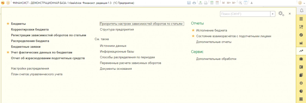 Партнерские решения на платформе 1С:Предприятие. WiseAdvice:Финансист. Бюджетирование