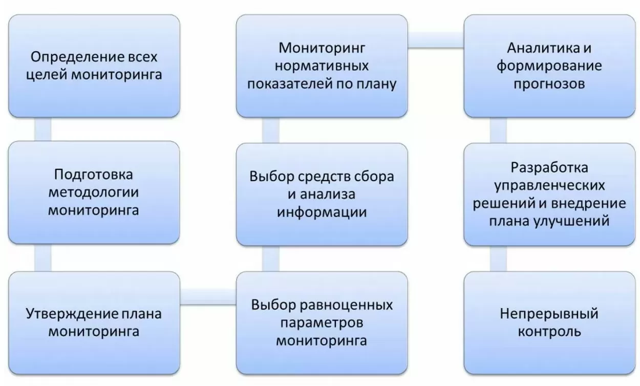 - Создание системы показателей и параметров, по которым будет осуществляться мониторинг нормативных значений.
