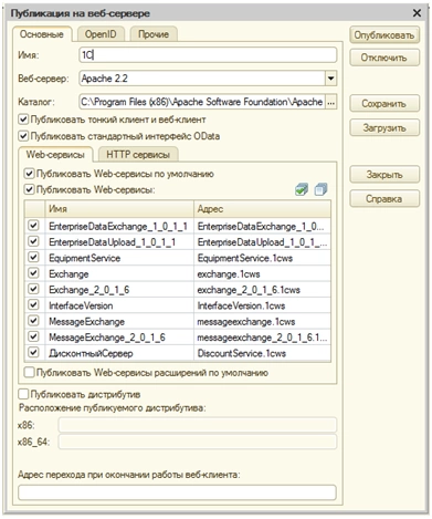 Для совместного применения с программой 1С достаточно рекомендуемой установки конфигурации Apache.