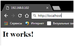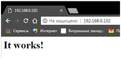 Для проверки работы веб-сервера открываем любой браузер и вводим – htpp://192.168.0.102. Если мы снова видим в окне браузера надпись «It works!», все работает.