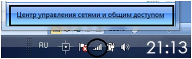 Определим IP-адрес нашего ПК в «локалке». Щелкнув в левом углу на значке «Сеть», перейдем в меню «Центр управления сетями и общим доступом».