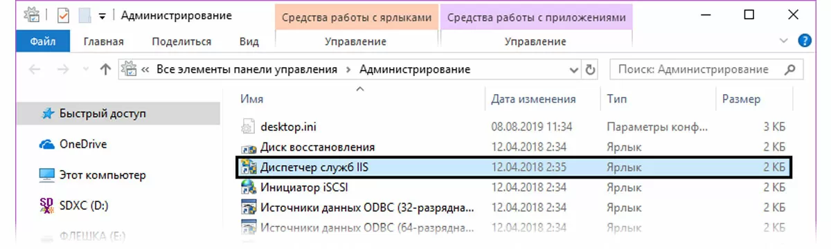 У нас появился ярлык «Диспетчер служб IIS». Запустим его.