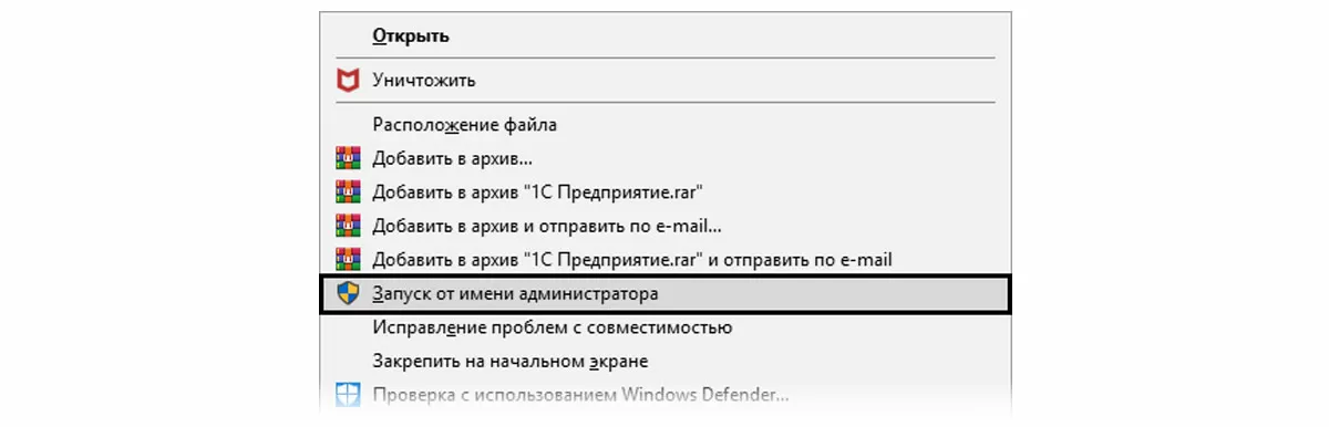 Запустим информационную базу 1С:Документооборот в режиме Конфигуратора от имени администратора. Это важно для корректной публикации нашей базы.