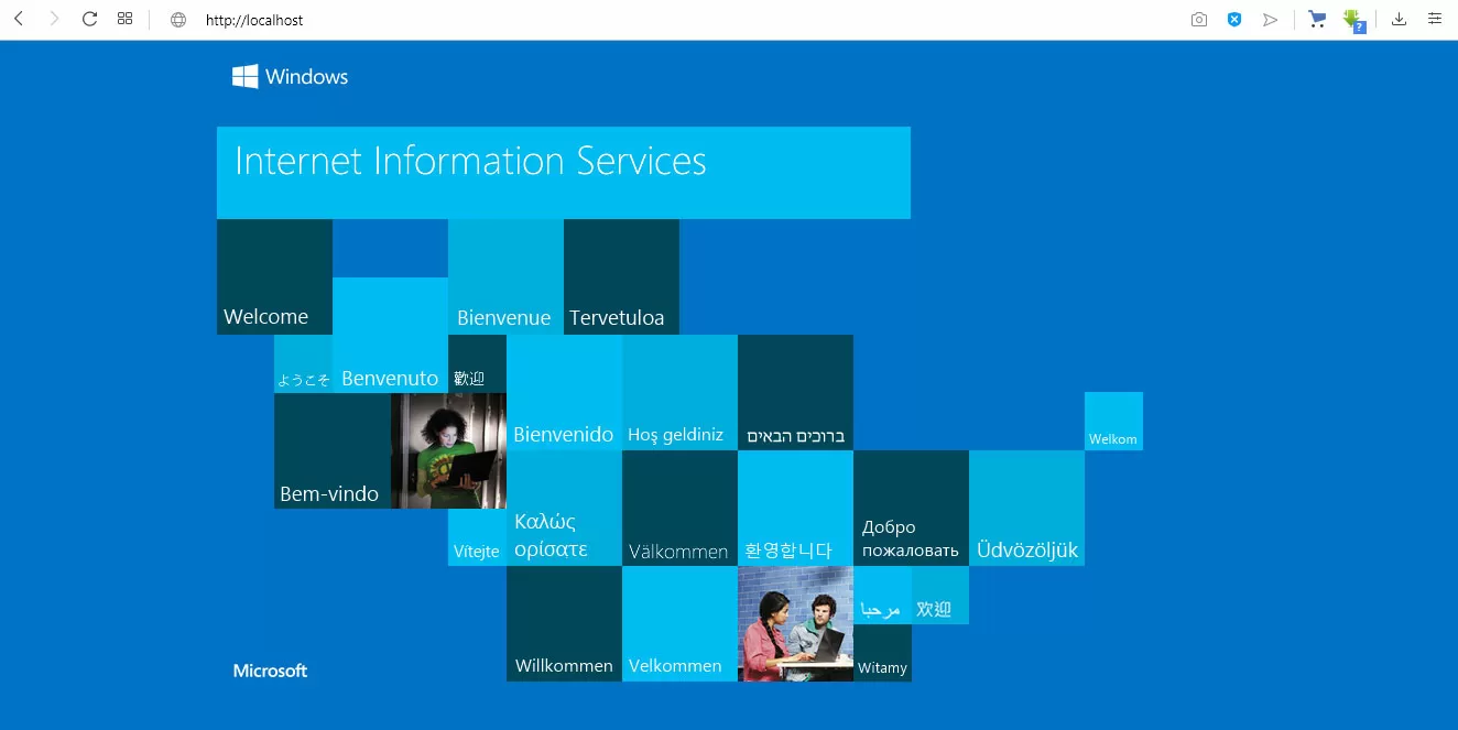 Проверить, работает ли веб-браузер, можно, введя в адресной строке http://localhost. В результате мы должны увидеть картинку: