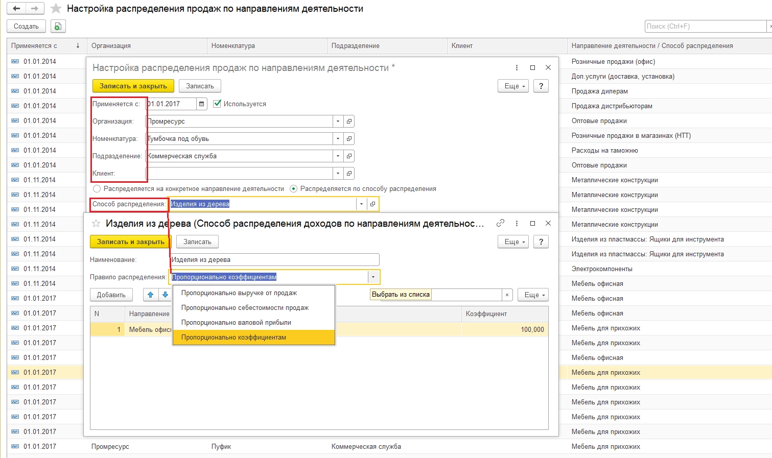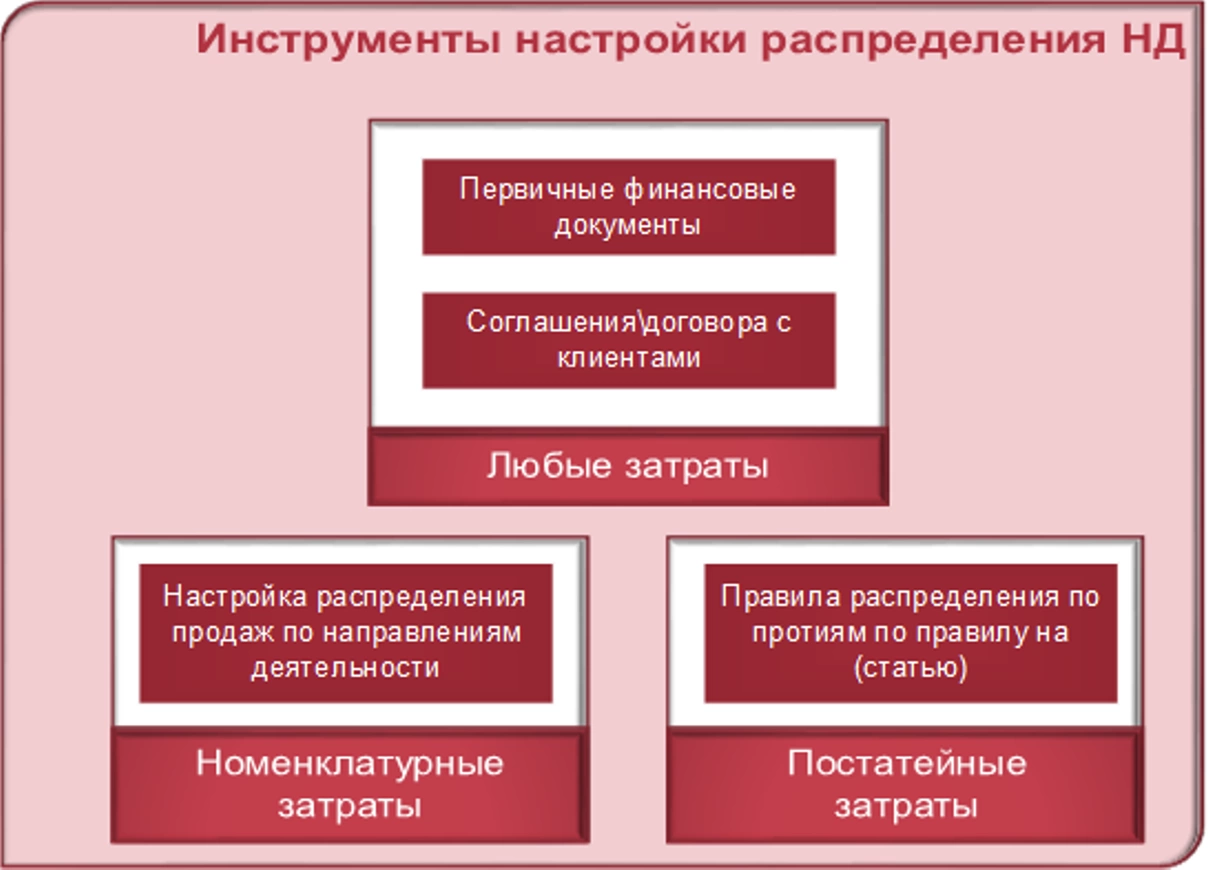 Примеры реальных проектов внедрения на базе ERP, победители конкурса 1С:Проект годаИнструменты для распределения затрат в разрезе подразделений аналогичны инструментам для НД, за исключением «Настройки распределений продаж по НД»: