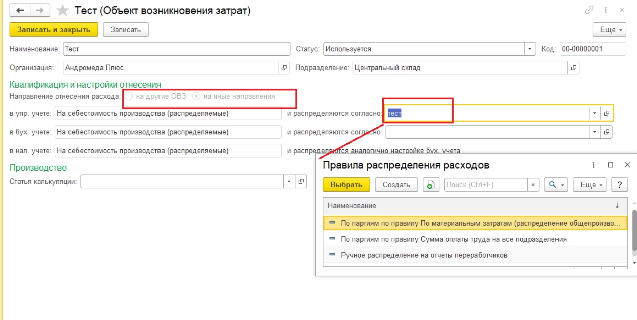 В последнем релизе системы версии 2.5.7 появился новый объект учета затрат – объект возникновения затрат (ОВЗ), который по сути является аналогом объекта калькуляции, на котором аккумулируются все затраты по указанной единице аналитики, осуществляется их транзит и перераспределение. Основные параметры учета и распределения ОВЗ задаются в его карточке. Расходы, собранные на ОВЗ, можно распределить на другой ОВЗ или на прочие направления согласно правилам распределения, например, на партию по правилу.