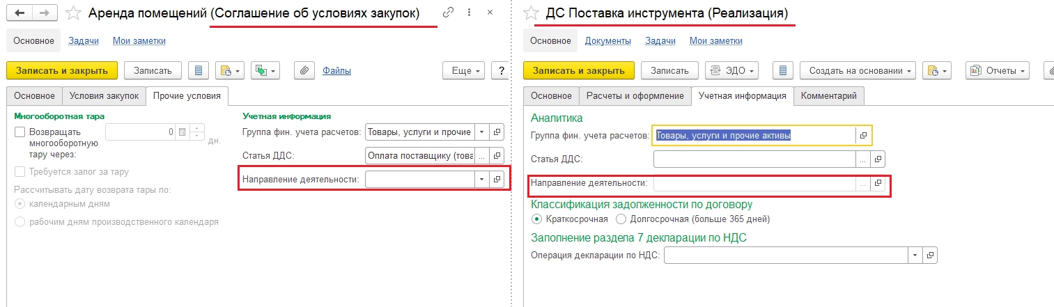 - в договорах\соглашениях (используются для автозаполнения первичных учетных документов, которые могут быть изменены вручную);