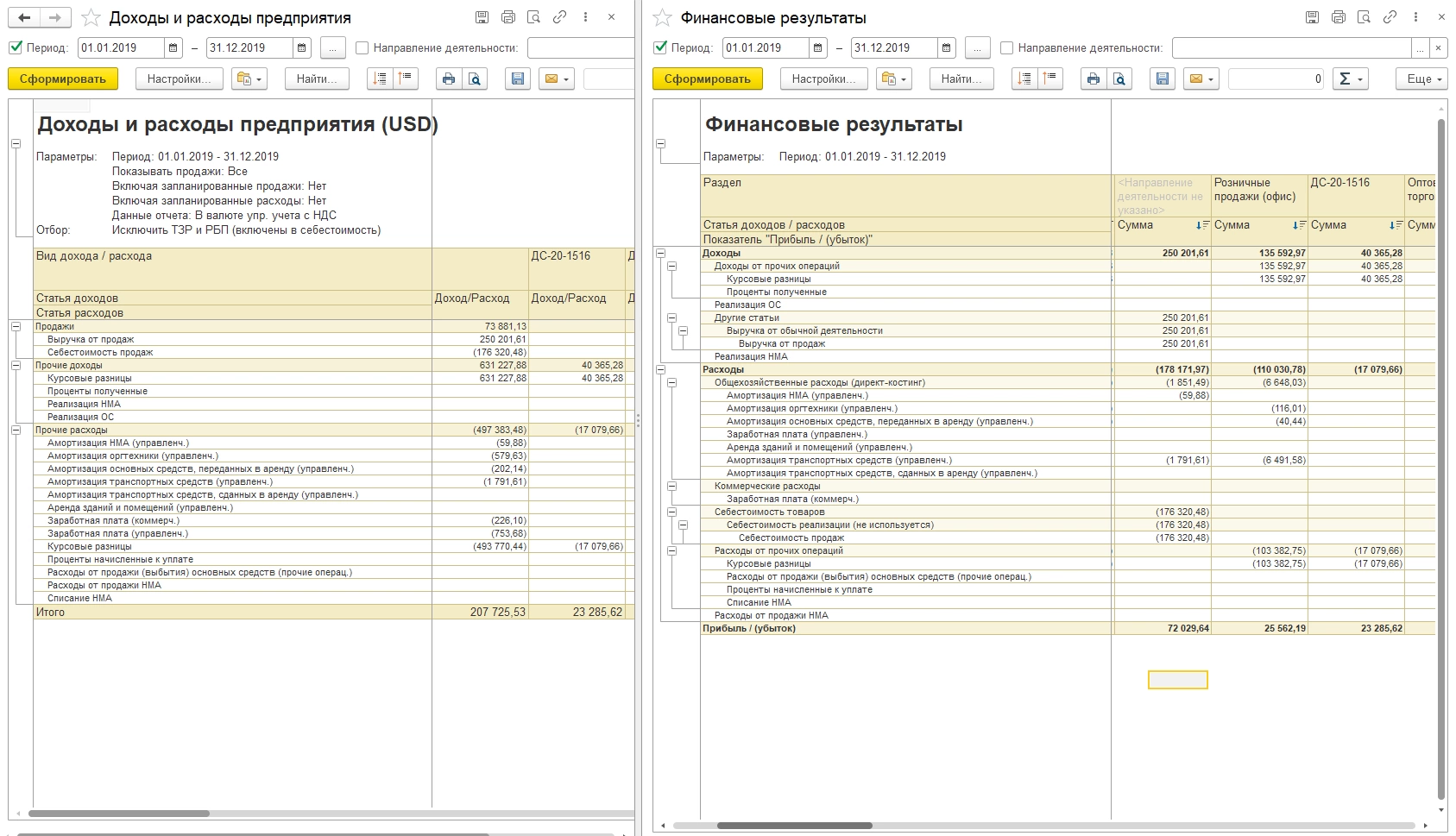 - «Доходы и расходы» дает возможность анализировать постатейные расходы и доходы предприятия компании;