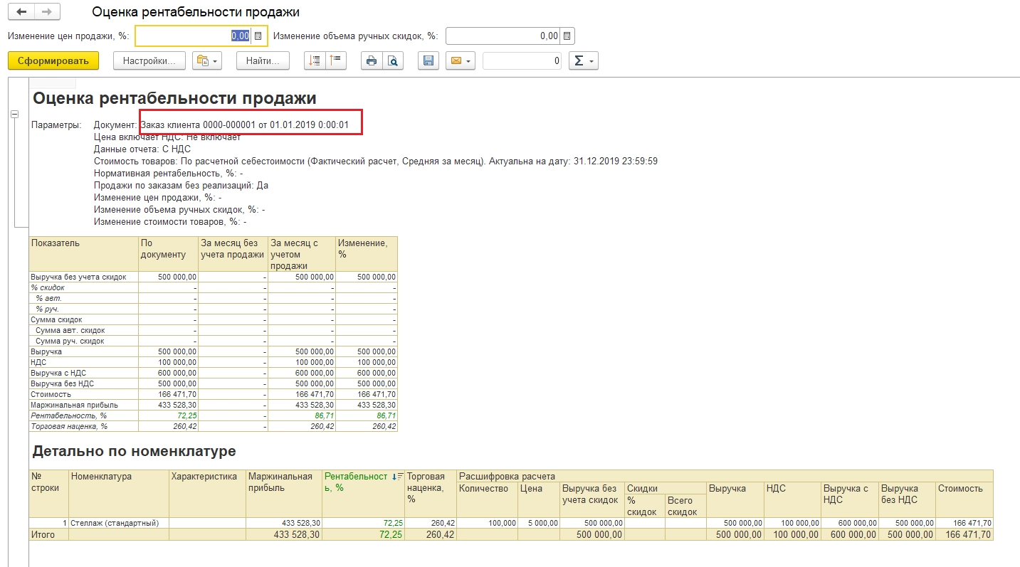 Для оперативного планирования S заказа используются документы «Заказ клиента», а анализ осуществляется через «Оценку рентабельности продаж».