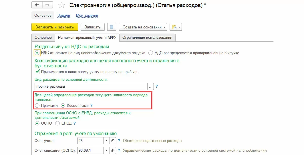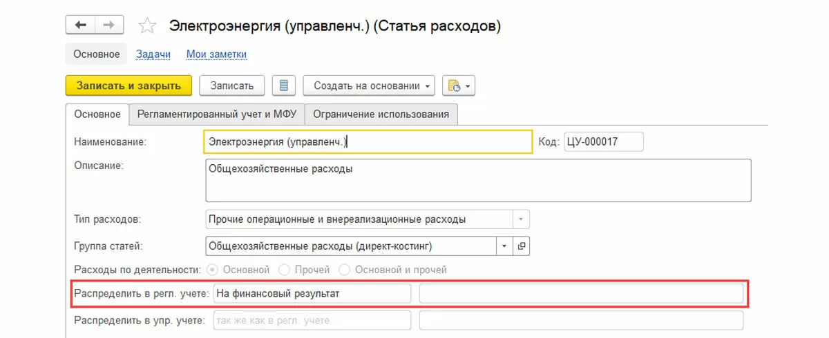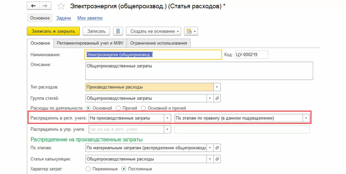 Поскольку траты должны включаться в себестоимость готовых продуктов (что естественно подразумевает производственные компании), в 1С ERP эта настройка доступна только для статей, у которых в качестве параметра перераспределения в регучете выбрано «На производственные затраты». Поскольку классификация имеет значение только для налогового учета, вариант разнесения, выбранный для упручета, не оказывает влияния на доступность данной классификации.