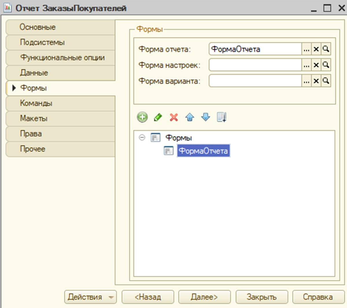 После добавления макета нужно добавить основную форму отчета.