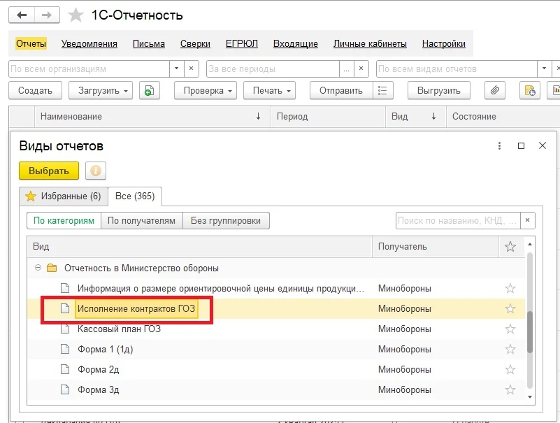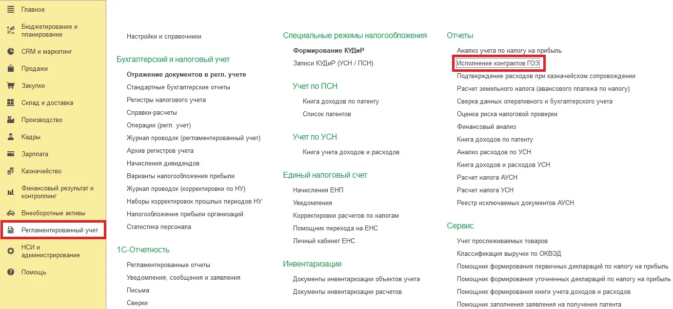 Основной отчет для ГОЗ, который формируется в 1С:ERP и 1С:КА – «Исполнение контрактов ГОЗ».