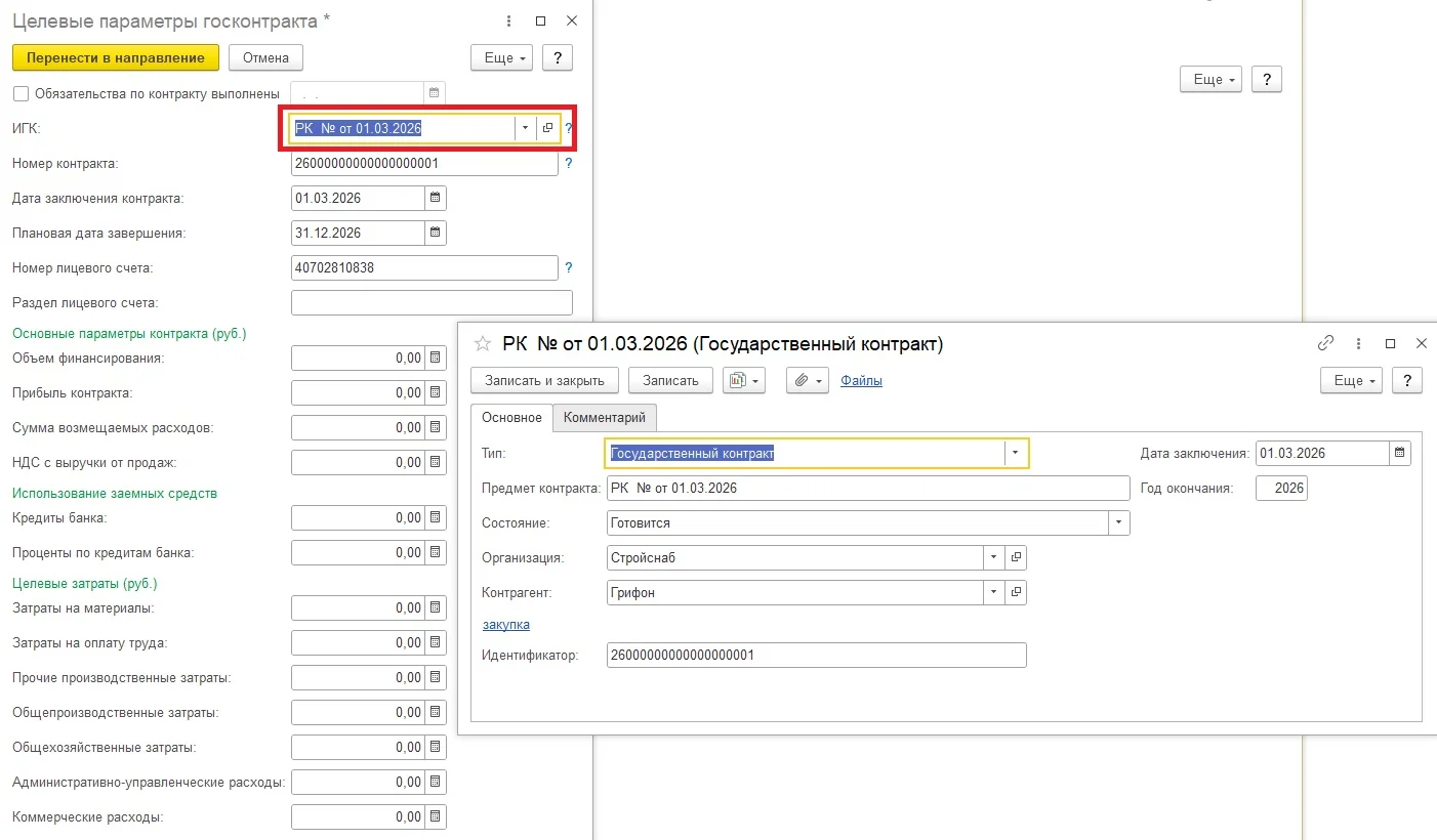 Автоматически установятся необходимые для контрактов ГОЗ объекты аналитического учета:- Учет расчетов с клиентами;