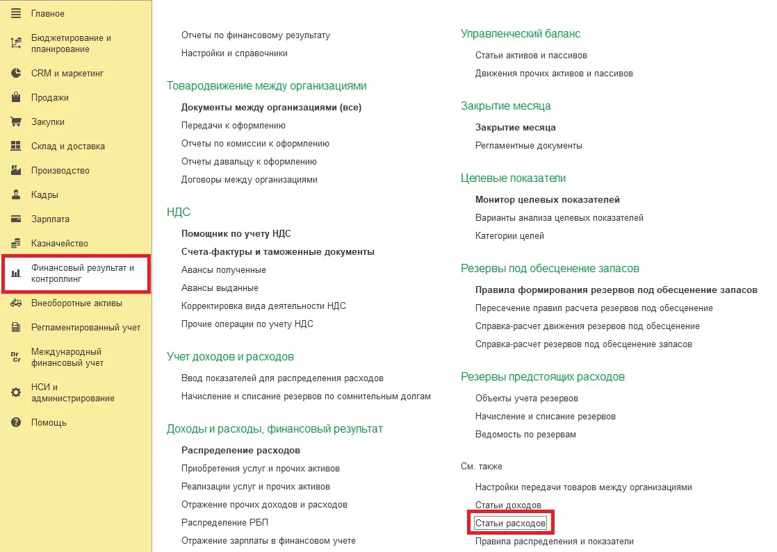 - Перейдите в раздел «Финансовый результат и контроллинг».
