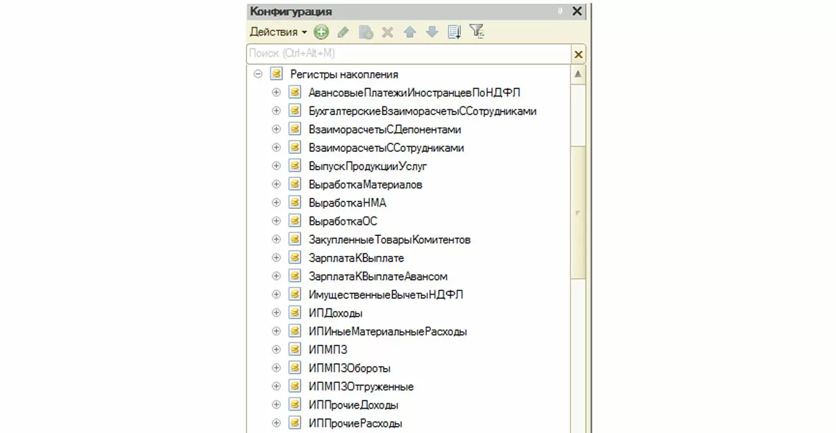 Если мы откроем любую конфигурацию 1С Предприятие, в дереве метаданных увидим раздел «Регистры накопления».