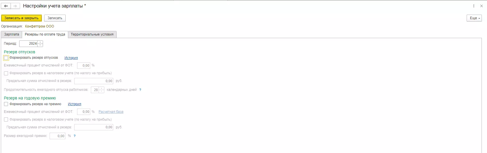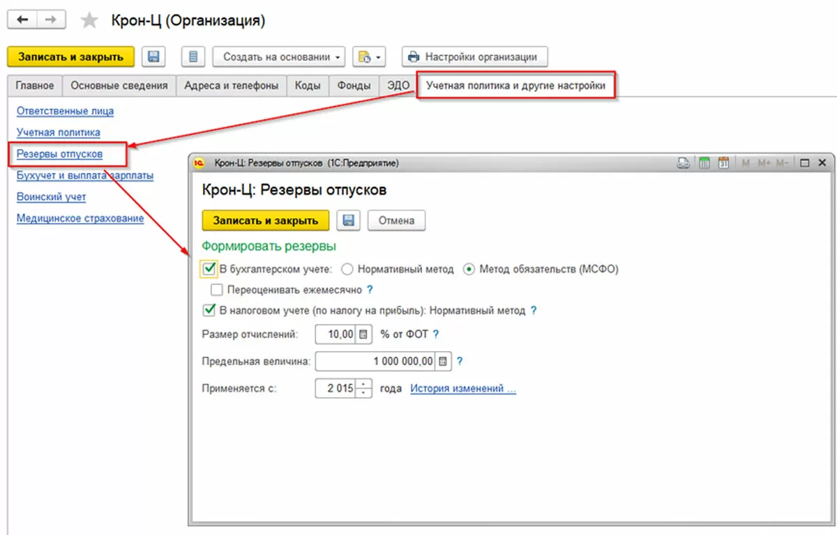 Начисление резерва по отпускам в 1С:Бухгалтерия
