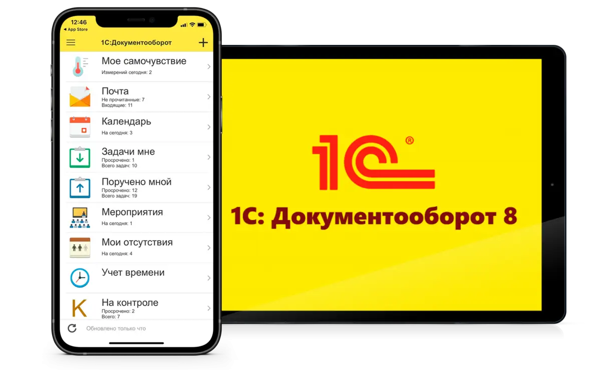 - Возможность работы через удаленное подключение к СЭД с помощью веб-браузера (в том числе через приложение 1С), с помощью мобильного клиента и мобильного приложения для смартфонов. Все это обеспечивает оперативность работы пользователей и их возможности не быть привязанным к компьютеру в корпоративной локальной сети;