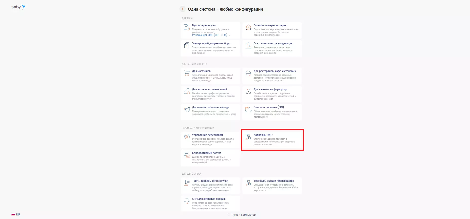 В открывшемся меню, выбираем «Кадровый ЭДО» с помощью него у вас появится возможность ознакомиться с уже настроенными бизнес-процессами автоматизации КЭДО.