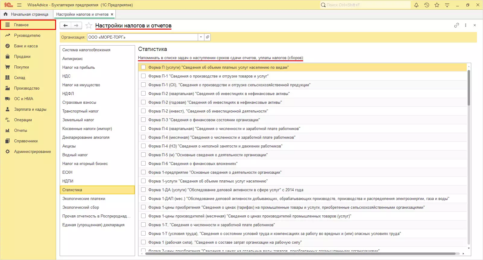 Настроить дополнительно уведомления-напоминалки можно в разделе «Главное» – «Настройки налогов и отчетов», установив нужную галочку в соответствующем разделе.