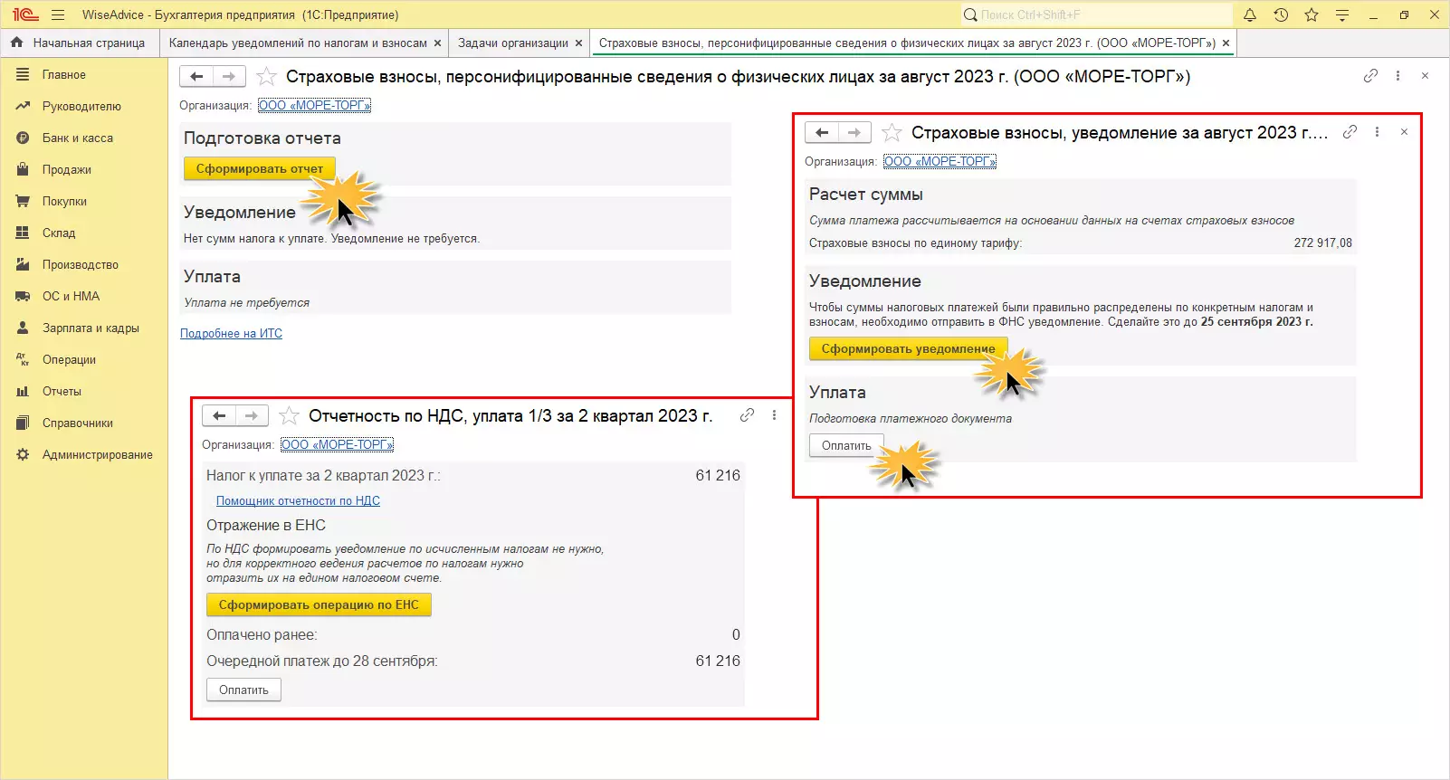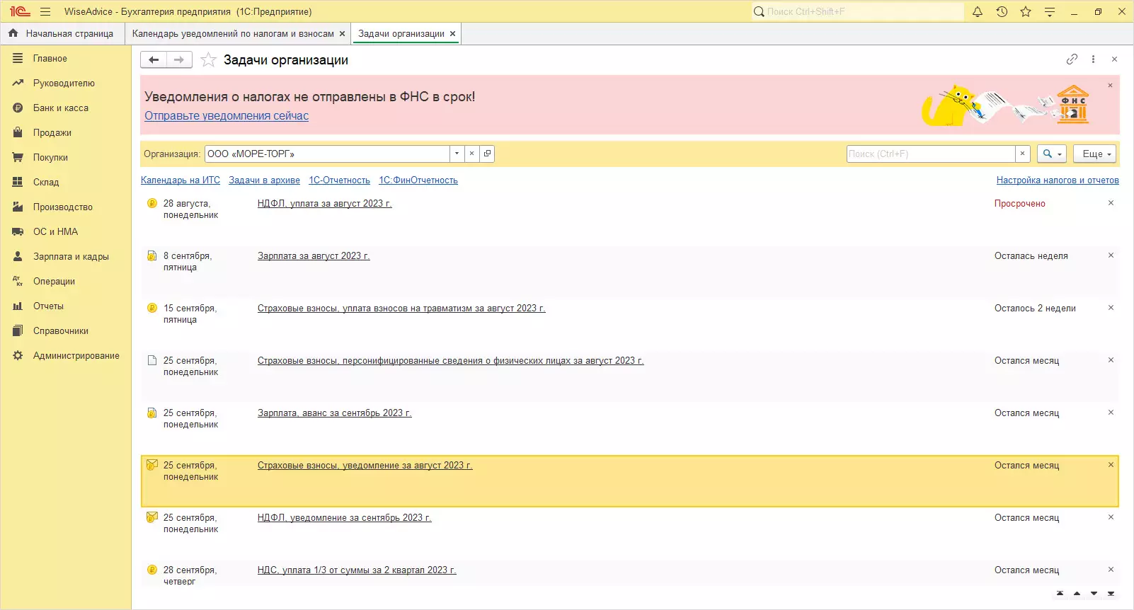 Здесь представлен полные перечень задач к выполнению, включая уплату налогов и сдачу отчетности.