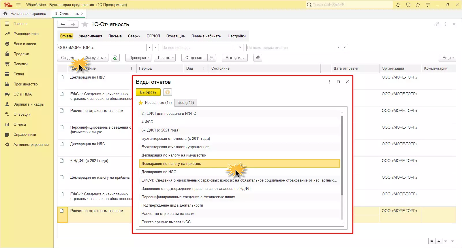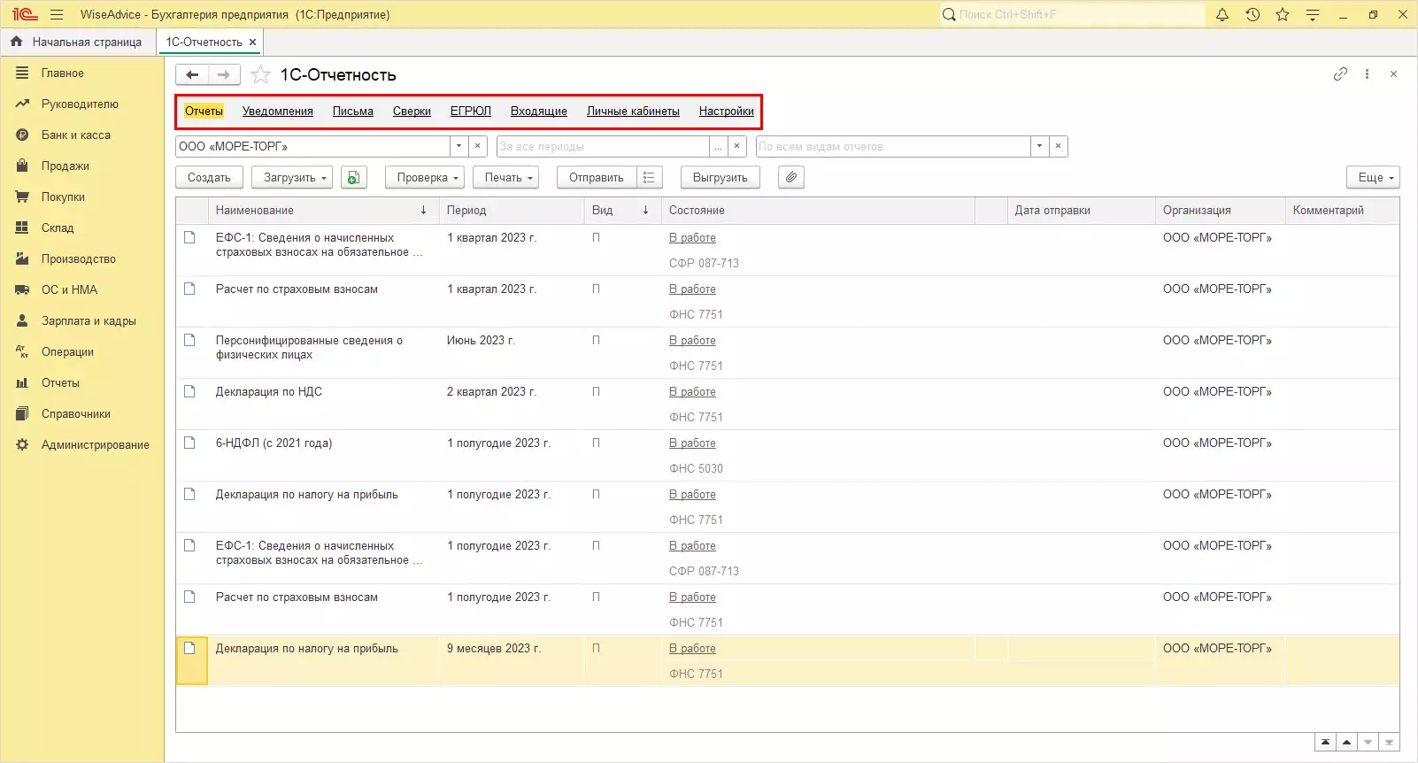 Работая в программе 1С:Бухгалтерия, пользователь самостоятельно может сдавать бухгалтерскую отчетность и контролировать прием обязательной отчетности госорганами.