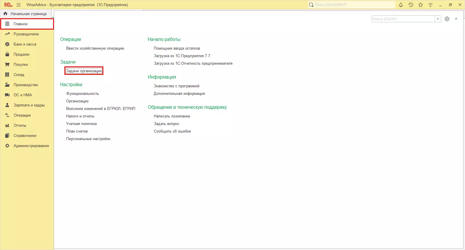 Контролировать пользователю сроки сдачи уведомлений и отчетов позволяет раздел «Задачи организации», находящийся в меню «Главное». Перейти в него можно также с начальной страницы по одноименной ссылке (на скриншоте выше).