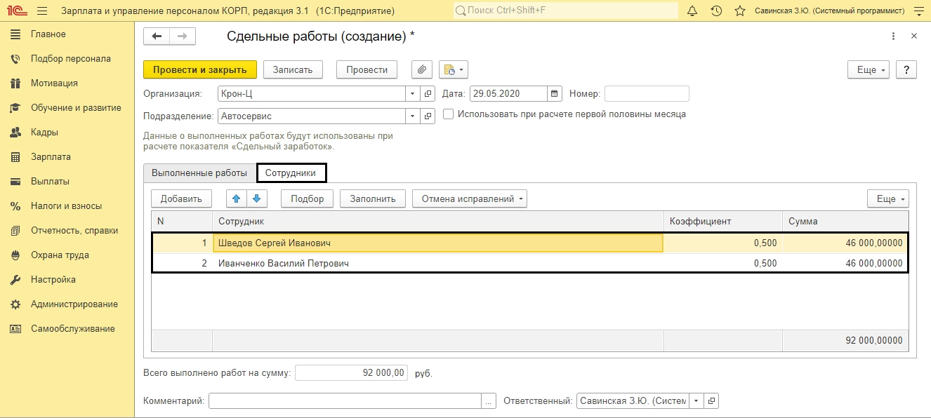 Сопровождение расчета сдельной оплаты в 1С:ЗУП. Все вопросы возьмем на себя!Если у вас возникли вопросы, обратитесь к нашим специалистам по сопровождению 1С:Зарплата и управление персоналом любым удобным для вас способом. Мы ответим на ваши вопросы и сделаем все, чтобы вы остались довольны нашим сотрудничеством. Далее рассмотрим ситуацию, когда в работах были задействованы несколько человек.