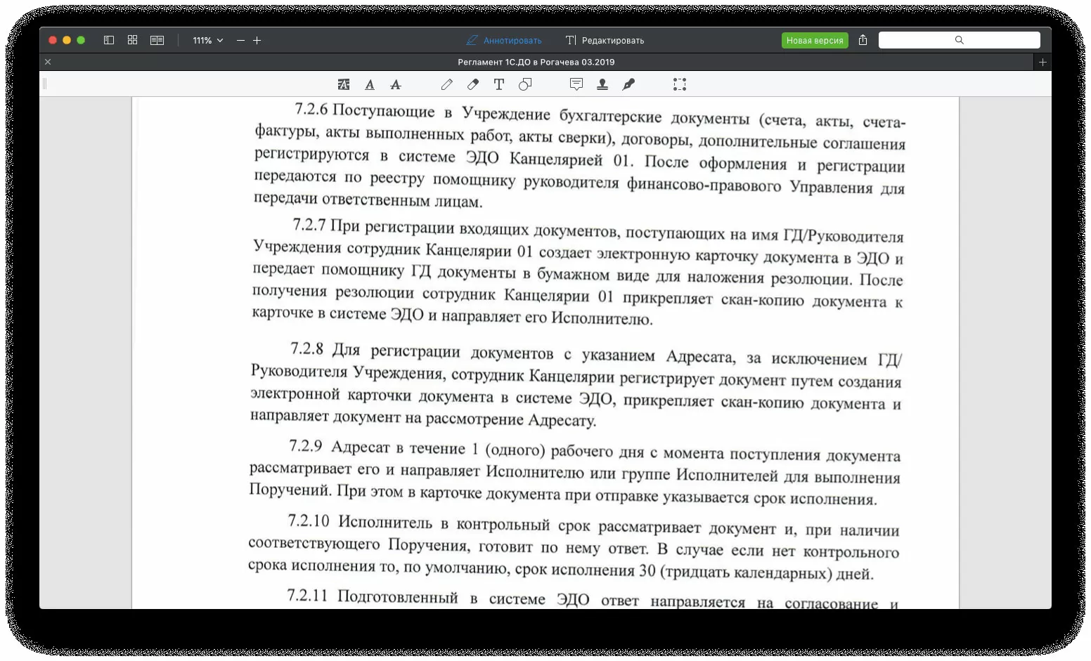 Регламенты и инструкции должны поддерживаться в актуальном состоянии, и для этого нужно назначить ответственных сотрудников. Отсутствие регламентов, правил, инструкций ведет к зависимости от тех, кто является их «носителем». Никто не может гарантировать, что правила работают и не исказились со временем. Постепенно СЭД без правил начнет превращаться в «междусобойчик».