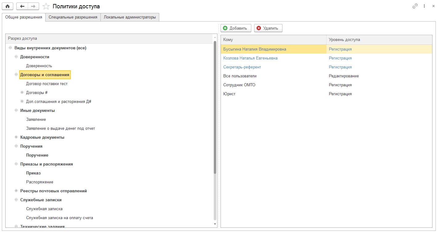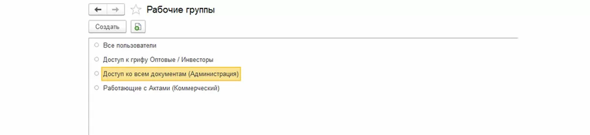 Группы пользователей. Для целей настройки прав доступов необходимо выделить группы пользователей. В программе «1С:Документооборот 8 КОРП» уже существуют предопределенные группы - сами подразделения из структуры предприятия.