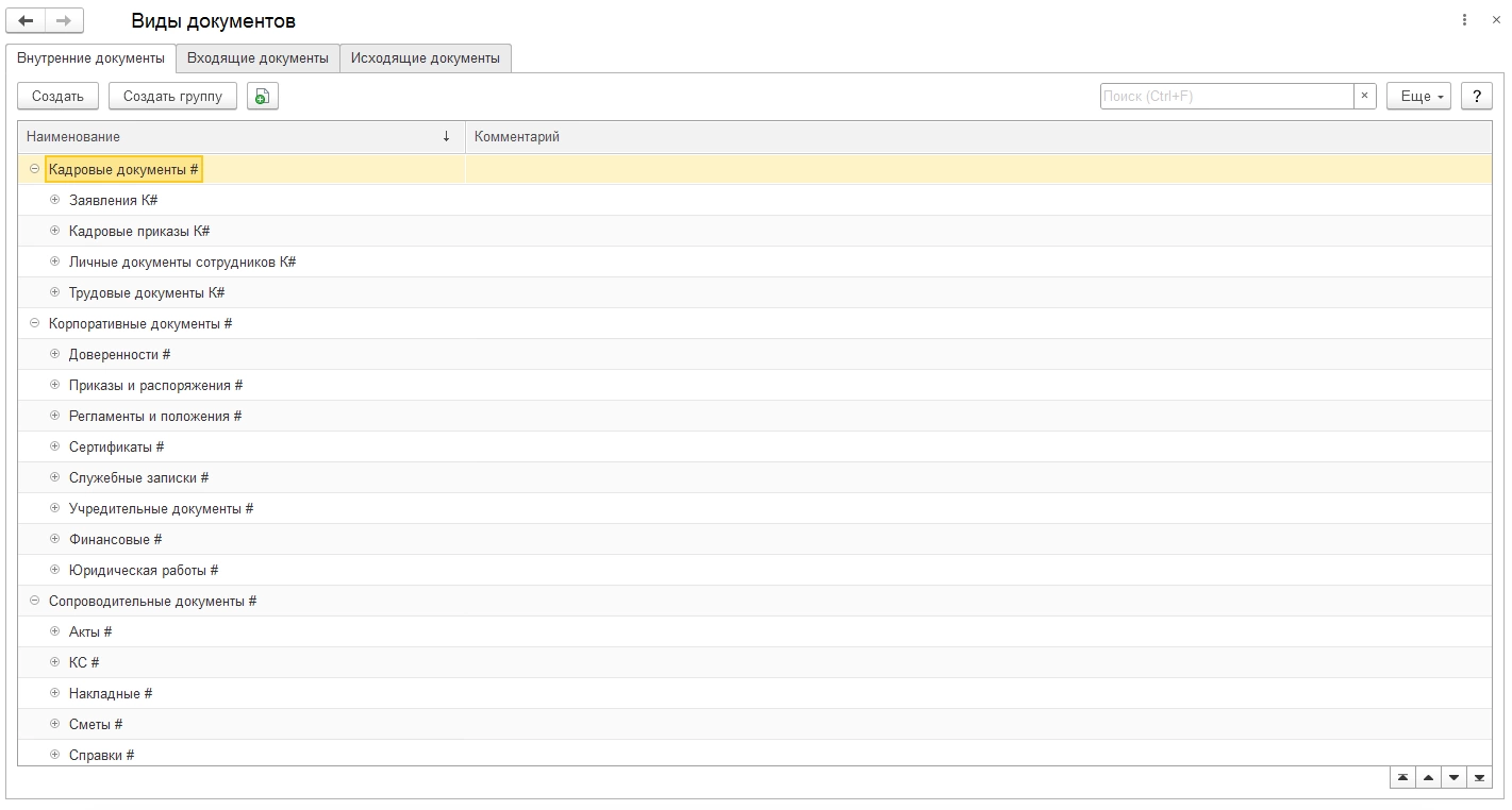 Для каждой предметной области нужно будет определить виды документов. Классификация для любой системы делопроизводства – это основа. Качество классификации определяет качество системы документооборота.