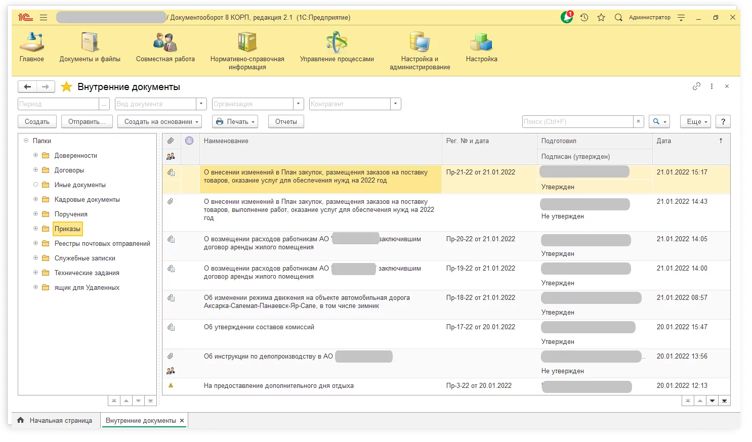Программа 1С:ДО КОРП позволяет наводить порядок, четко структурировать документы и работу сотрудников в организации, регламентировать документационное управление организацией и много другое.