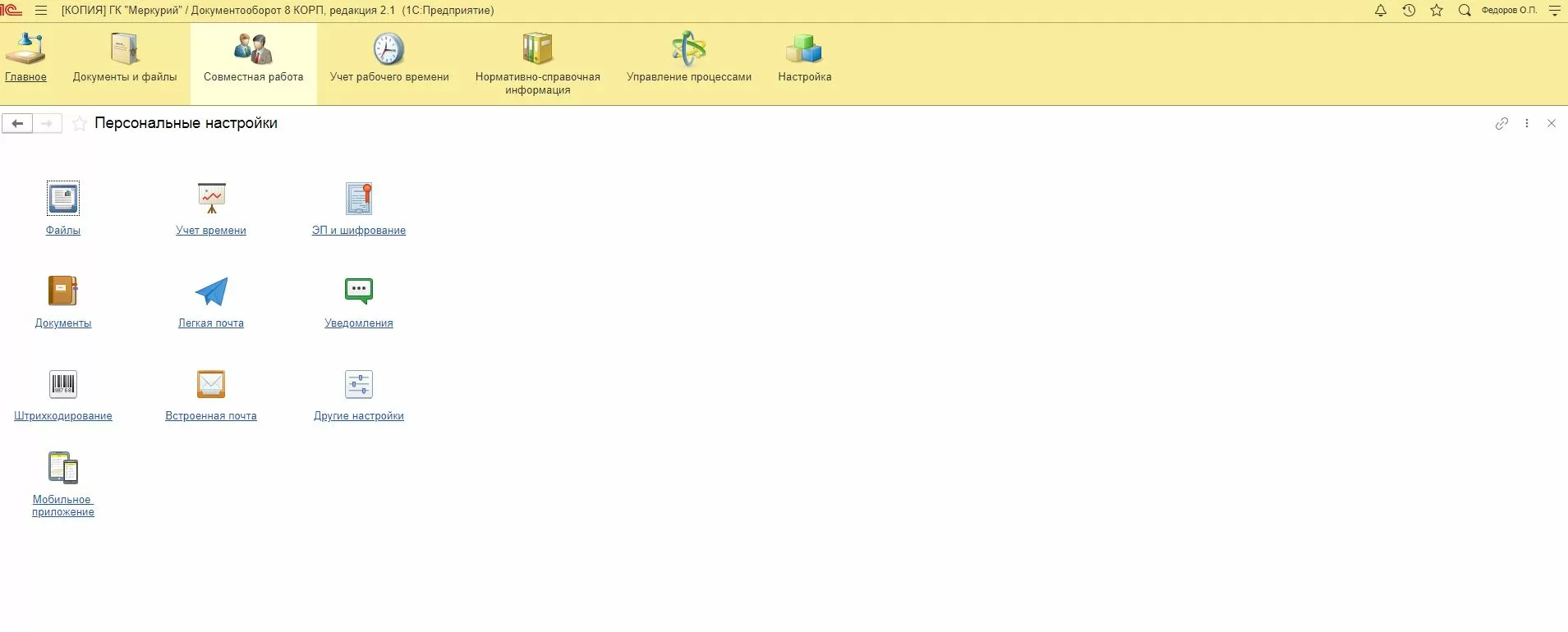 Прежде чем приступить к работе в новой созданной базе «1С:Документооборот», необходимо выполнить некоторые настройки.