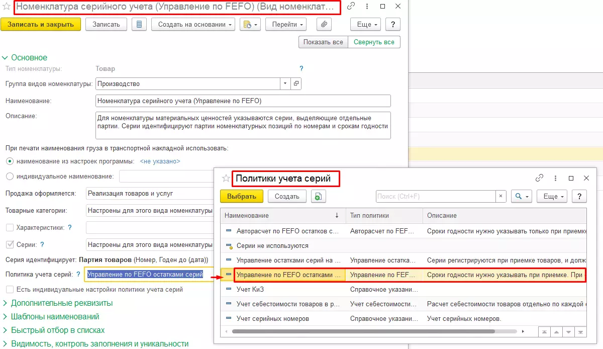 Для решения таких задач, как организация постпродажного обслуживания и управление рекламациями, а также ведение учета и обеспечение контроля за товарными остатками по срокам годности, рекомендуется использовать аналитику складского учета – Серии и сроки годности.