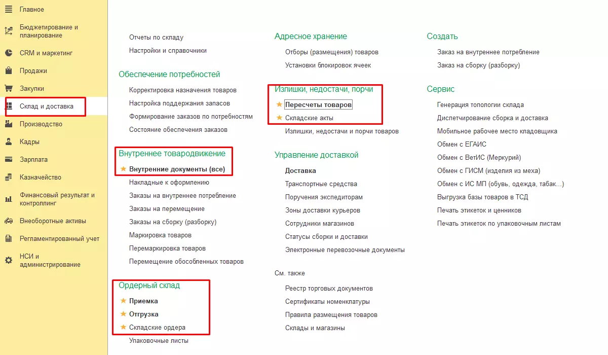 Найти рабочее место и соответствующие документы можно в разделе «Склад и доставка.