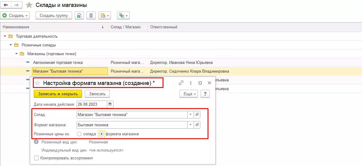 Чтобы измерить маркетинговый прогресс, склады можно классифицировать по формату магазина/склада, включив опцию «Форматы магазинов» в разделе НСИ и администрирование – Настройка НСИ и разделов – CRM и маркетинг. А затем склад и формат магазина связать гиперссылкой в карточке склада.