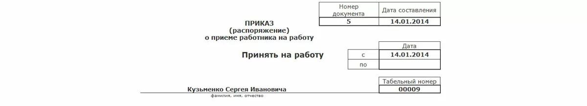 Пример склонения по падежам можно видеть в «Приказе о приеме на работу». В карточке сотрудника его ФИО указано в Именительном падеже, а в печатной форме – в Родительном.