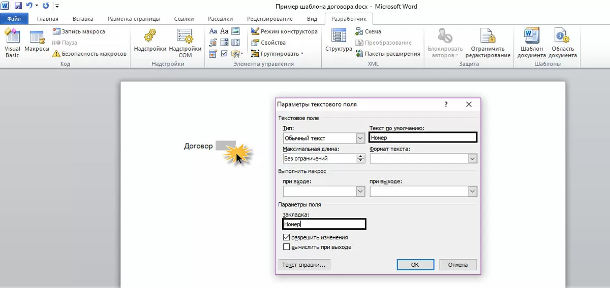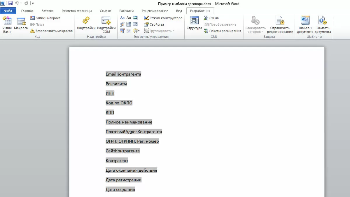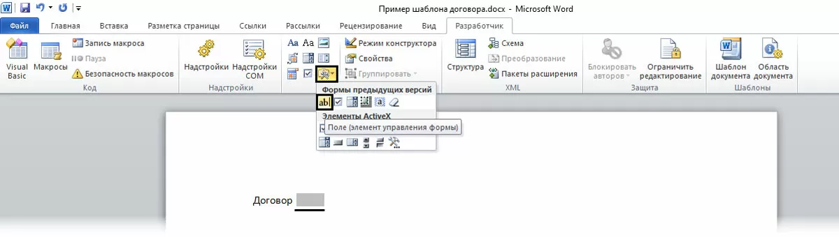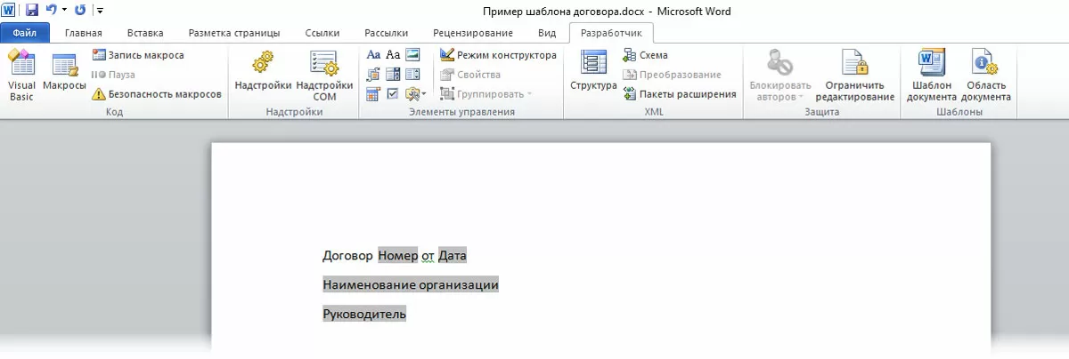 Формирование заполняемых полей шаблона файла вручную в MS Word