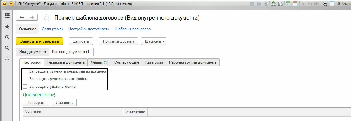 Здесь же можно ограничить круг пользователей, для которых будет доступен шаблон.