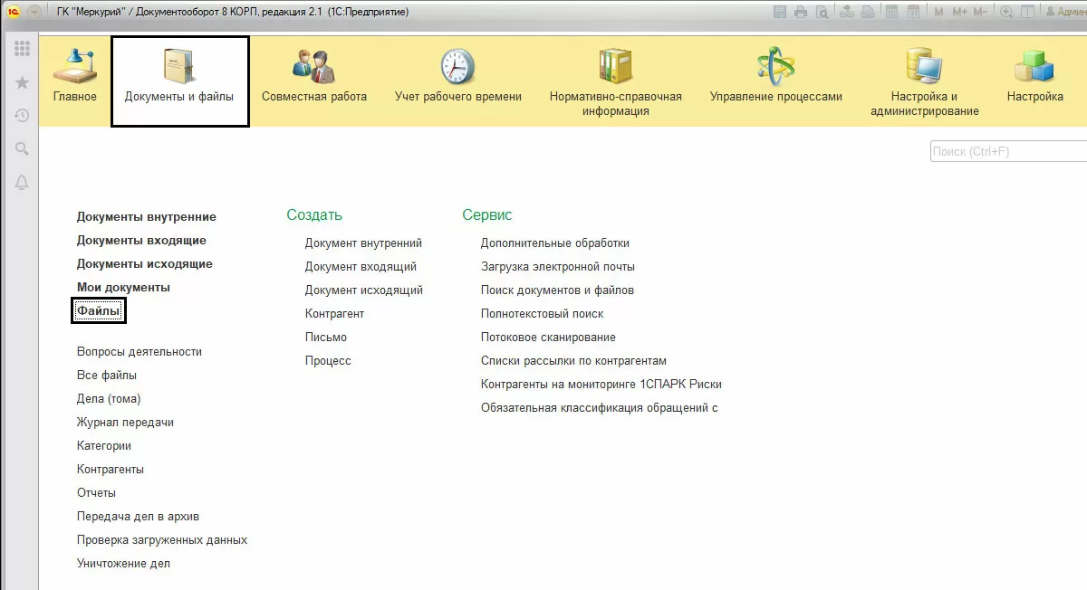 Далее перейдем к созданию файла шаблона. Для этого нам нужен пустой файл документа MS Word, который в дальнейшем мы закрепим в настройках. Перейдем в раздел «Документы и файлы-Файлы».