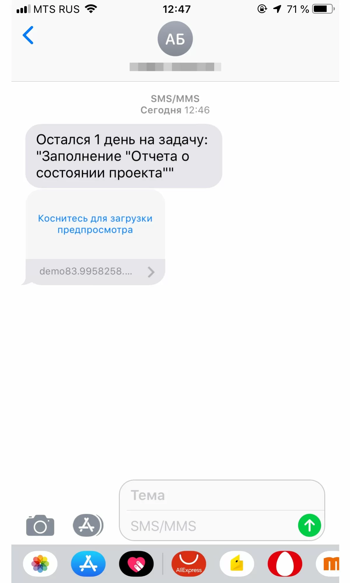 Из СМС-уведомления также можно перейти к задаче в мобильном браузере.