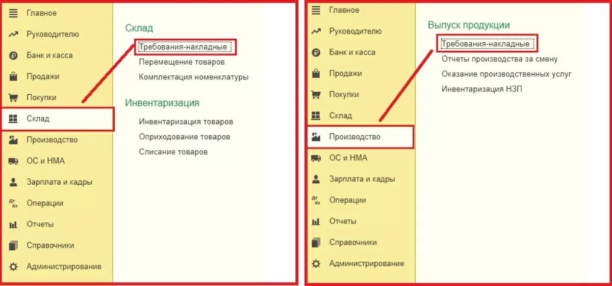 Для списания материалов в программе 1С 8.3 надо заполнить и провести документ «Требование-накладная». Поиск его обладает некоей вариативностью, то есть может быть осуществлен двумя путями:
