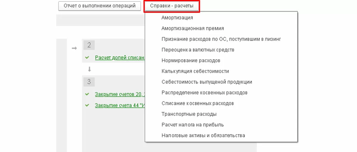Отчет с расчетом можно открыть, нажав на выполненную операцию или на «Справки-расчеты».
