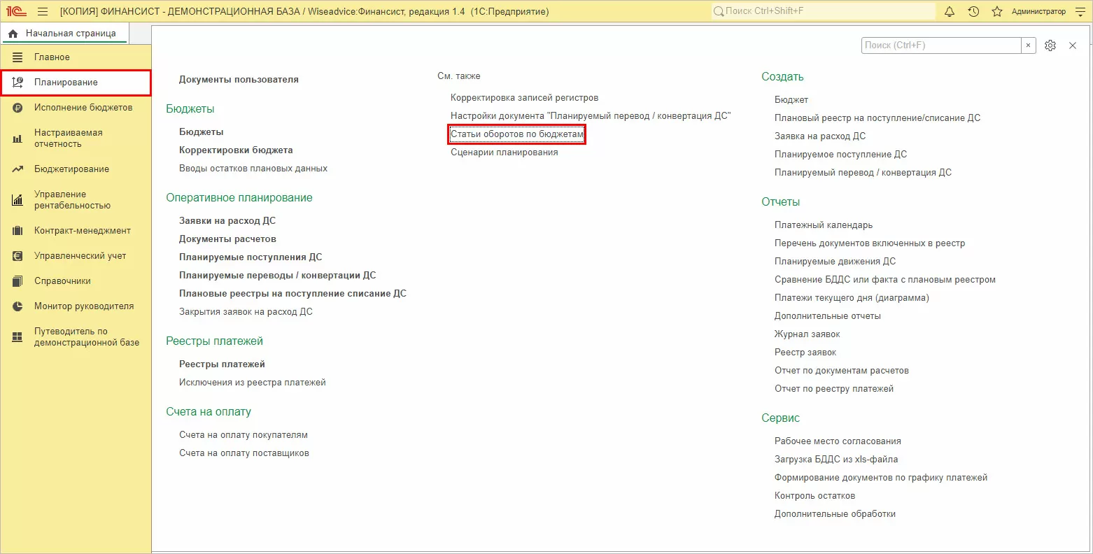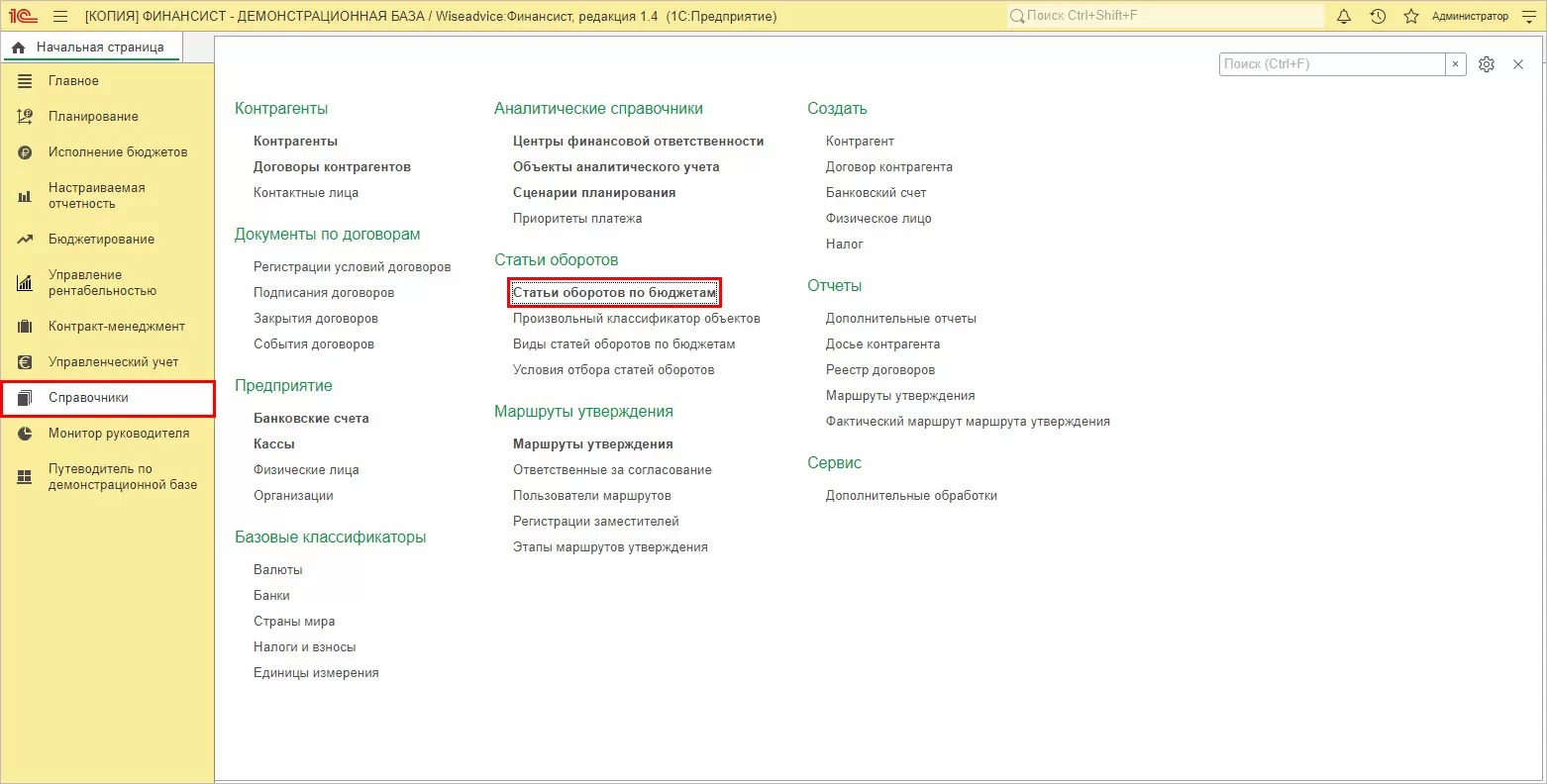 В разделе «Планирование» также есть доступ к данному справочнику.