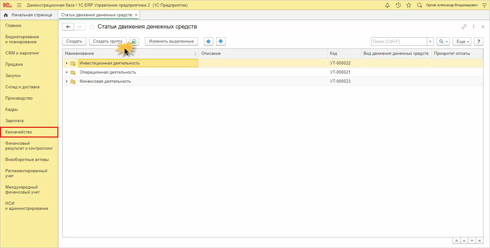 Нажав кнопку «Создать группу», задайте группы статей ДДС по принципу, описанному выше.