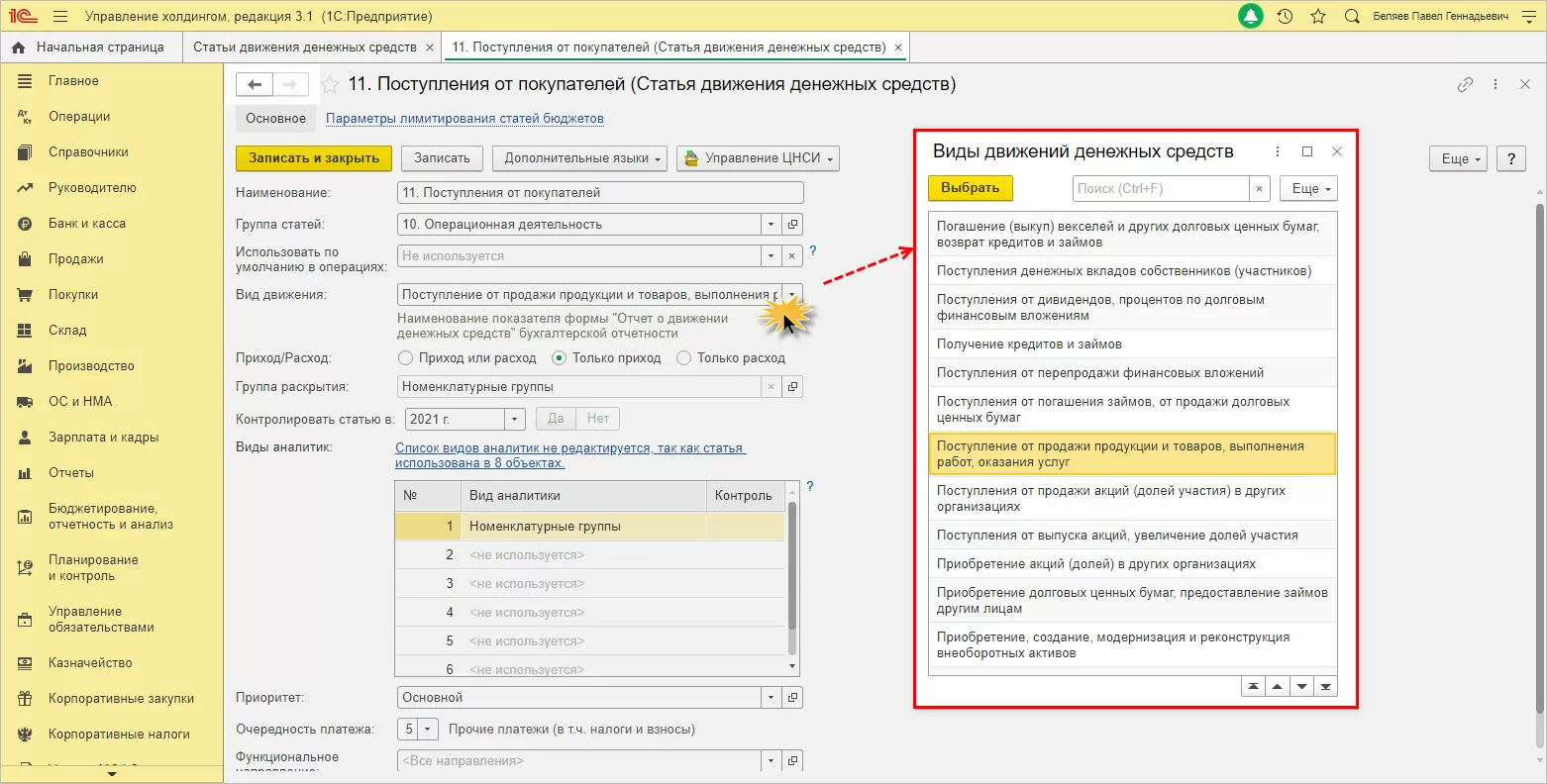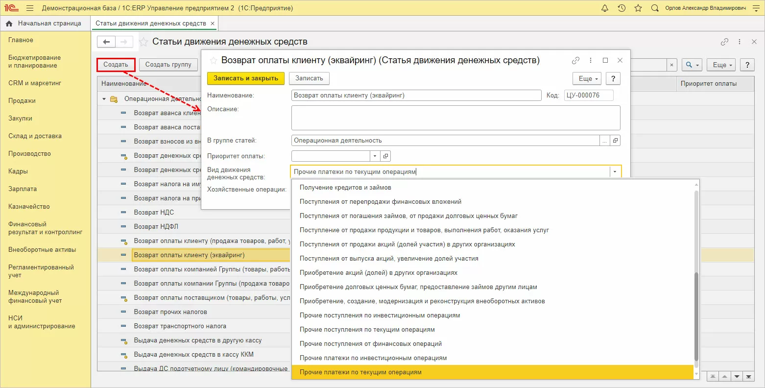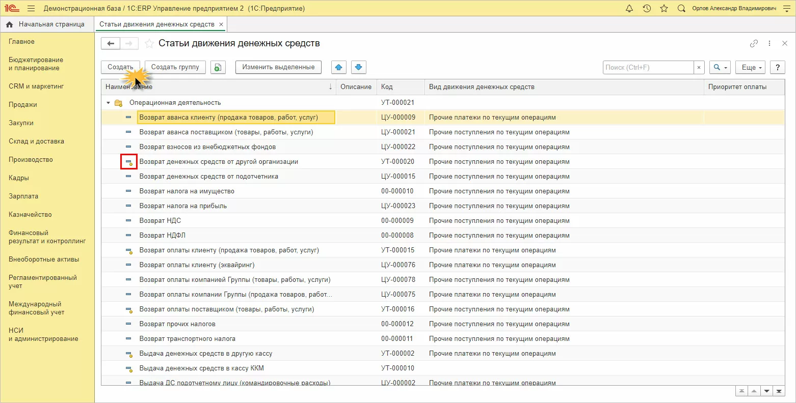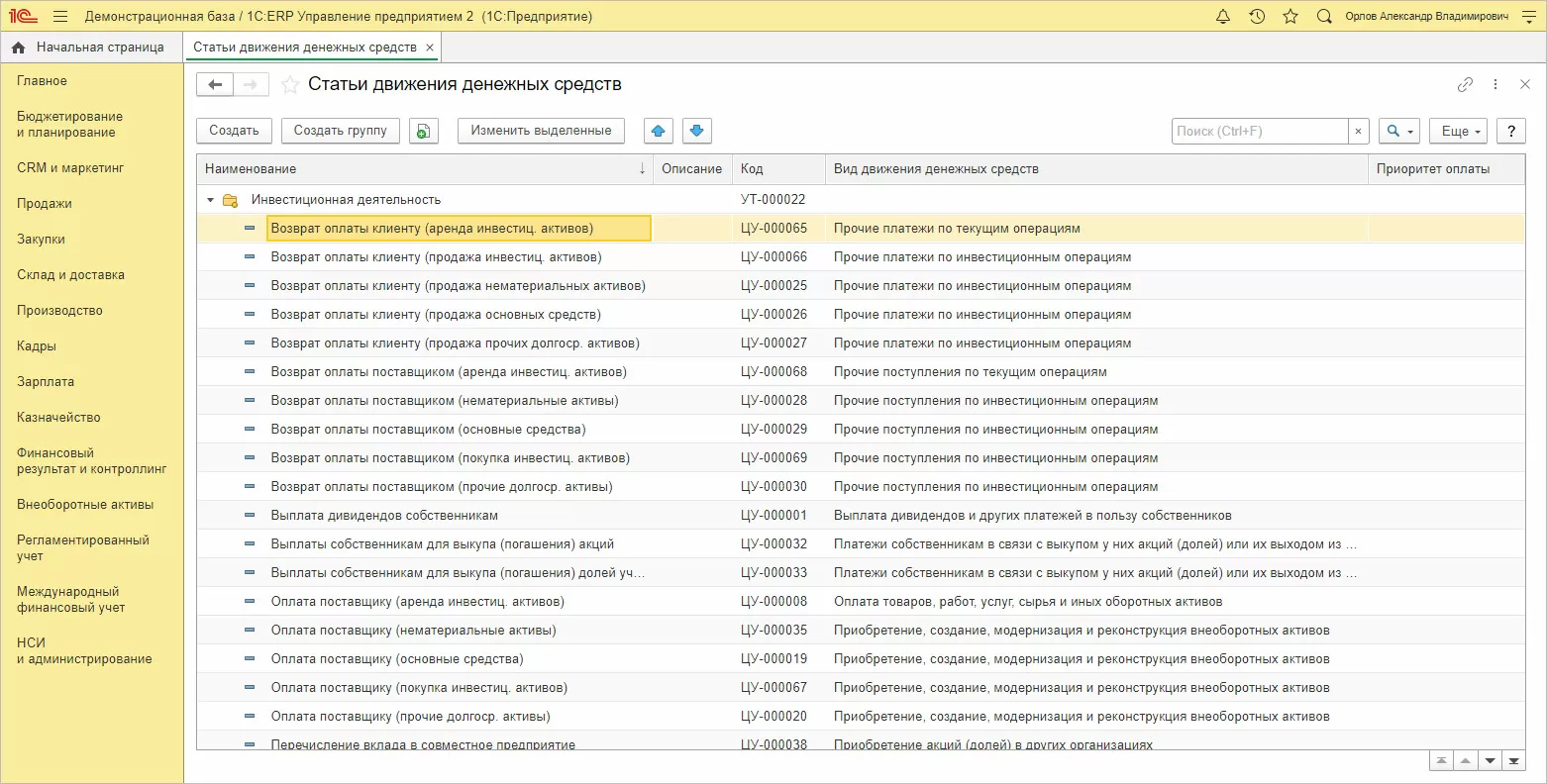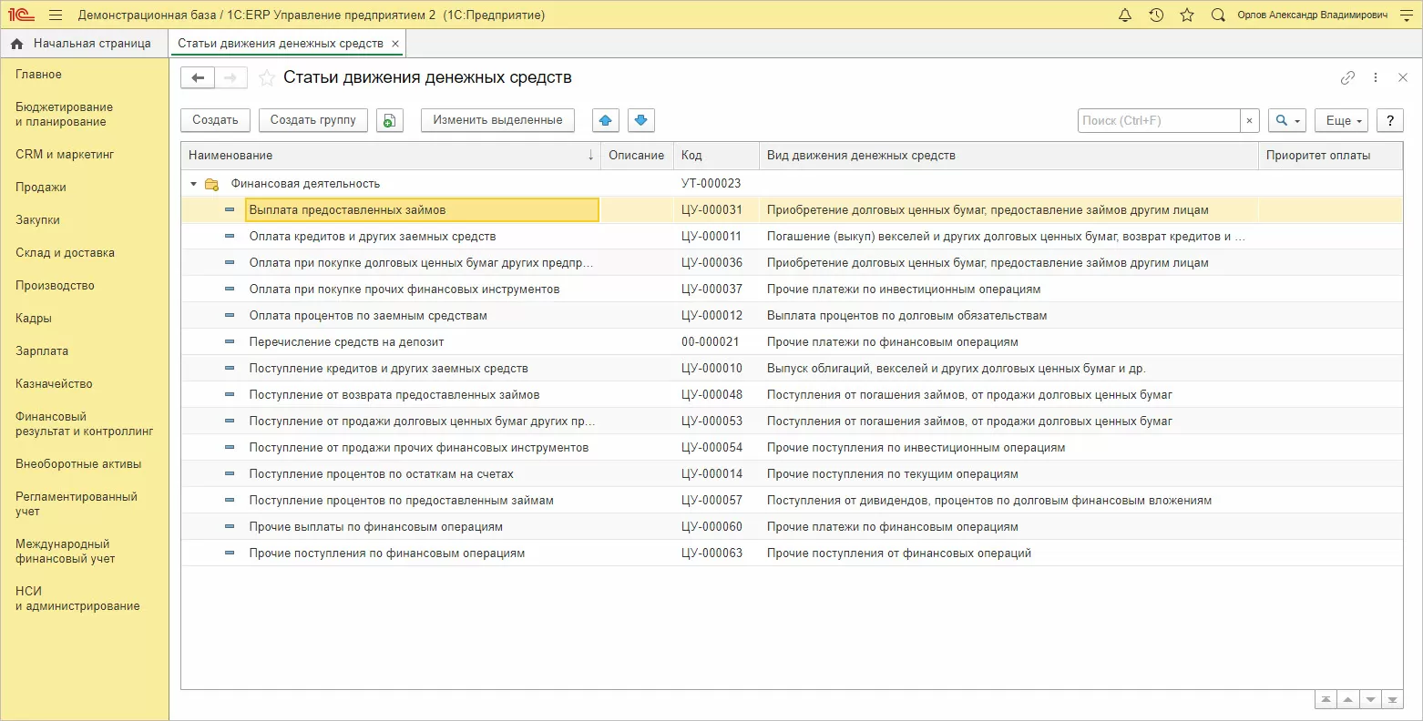 Статьи движения денежных средств в 1С:ERP Управление предприятием 2Статьи ДДС в 1С:УХ