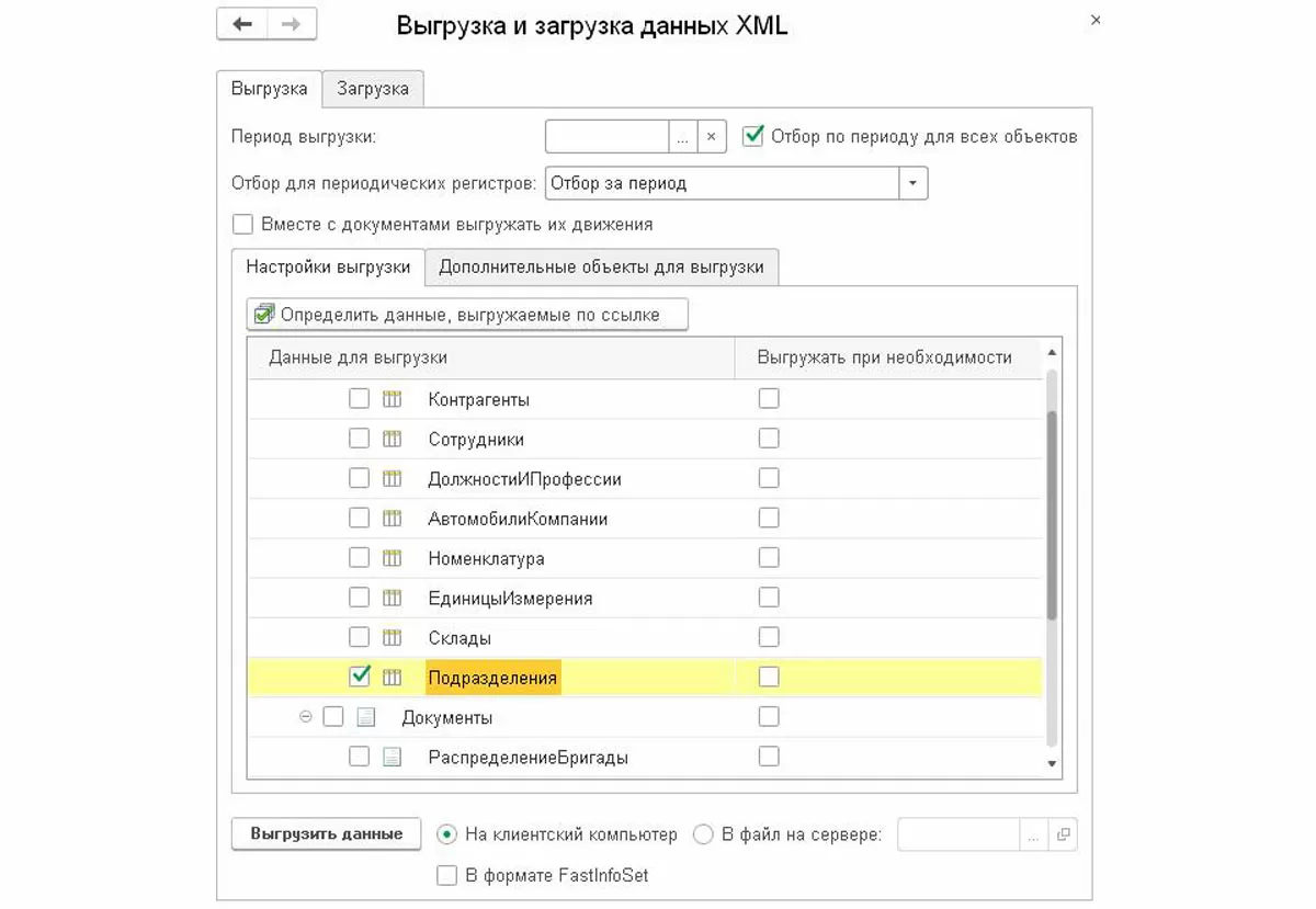 Перенос справочников в 1С быстро и с гарантиейПри открытии данной обработки, нам необходимо указать, какие объекты мы хотим перенести и выбрать файл. Затем запущенная выгрузка справочника создает XML-файл, куда записывает все данные.