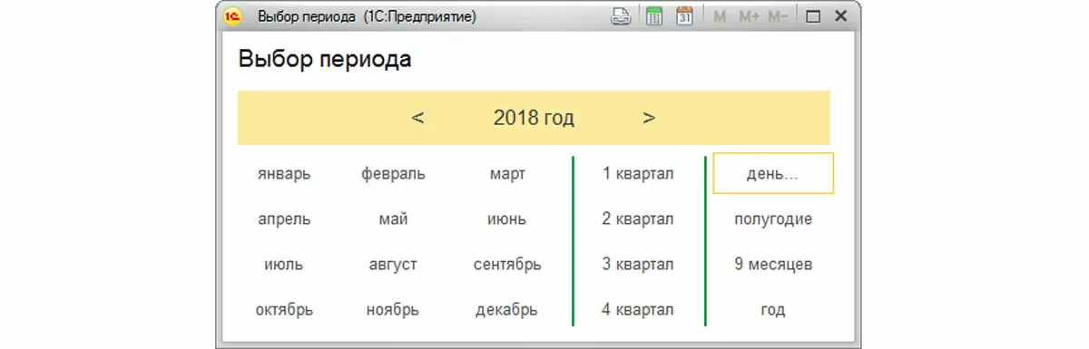 Обновив данные в конфигурации, переходим в пользовательский режим. Период выбираем из стандартных вариантов.