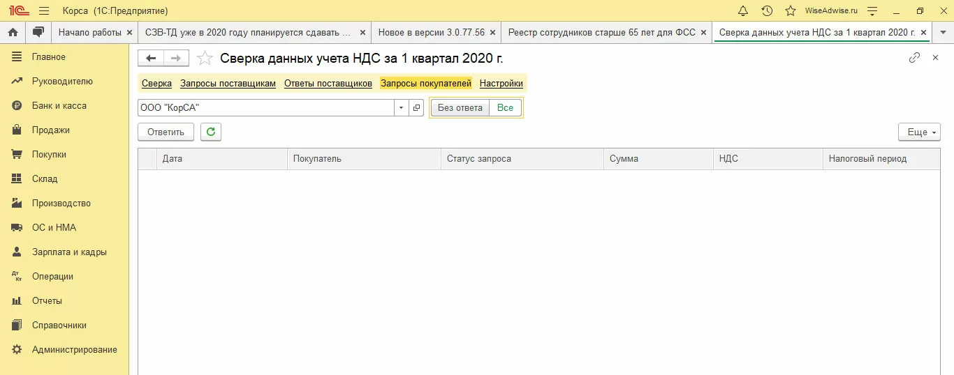 Все входящие запросы будут отображены в данном меню. Все, что можно сделать – отсортировать уже завершенные сверки и ответить на актуальные запросы.