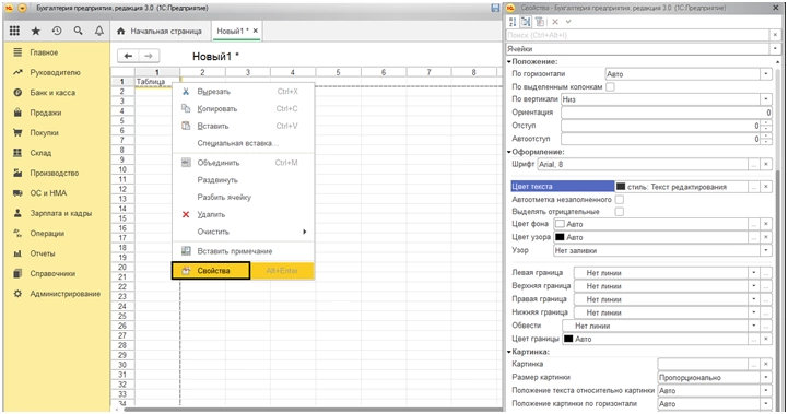 Все печатные формы в программах 1С Предприятие формируются в формате табличного документа, напоминающего Excel, из строк и столбцов, у каждого из которых есть свой уникальный номер, им можно присвоить имя, оформить их, выбрав цвет текста, фона, а также рамок, и пр. Рассмотрим принципы работы с табличным документом на примере «1С:Бухгалтерия».