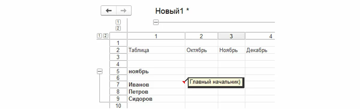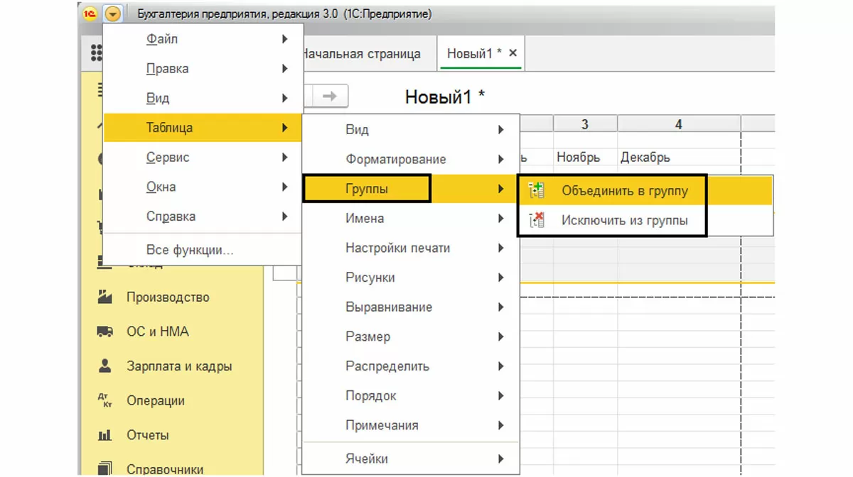 Формируя структуру нашей таблицы, мы можем сгруппировать строки или удалить группировку при необходимости («Файл-Таблица-Группы»).